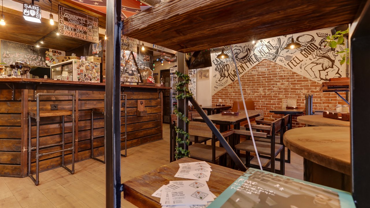 Стейк хаус Sab corner - это бар, гастропаб и пивной ресторан. У нас вы можете приятно провести время с друзьями или просто по-настоящему расслабиться после рабочих будней, в чём вам с радостью помогут наши отменные бармены и ассортимент спиртного. Вам посоветуют варианты горячительного, которые вам определённо понравятся! Вам нужно лишь рассказать, что предпочитаете: желаемый градус и вкус (сладкий или горьковатый). Ведь именно кружечка полюбившегося пива точно украсит вечер и поднимет настроение!